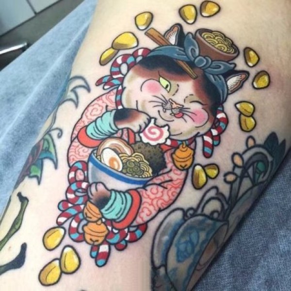 日式传统风格的猫土鼠青蛙等动物纹身