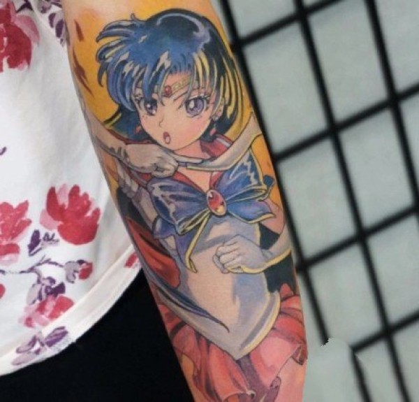 一组手臂和小腿上的动漫人物纹身图案欣赏