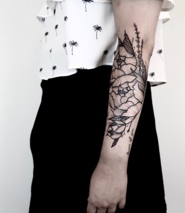 和实物非常相似的手臂花朵纹身图案