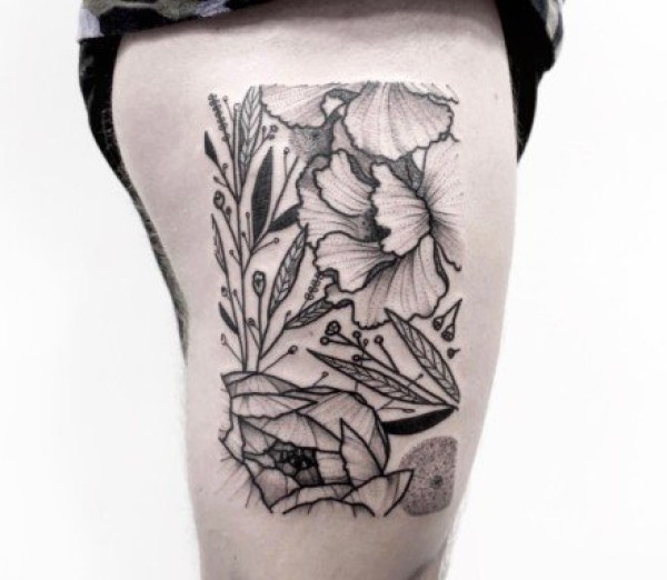 清新花朵腿部纹身图案图片_植物纹身图案大全_纹身图吧