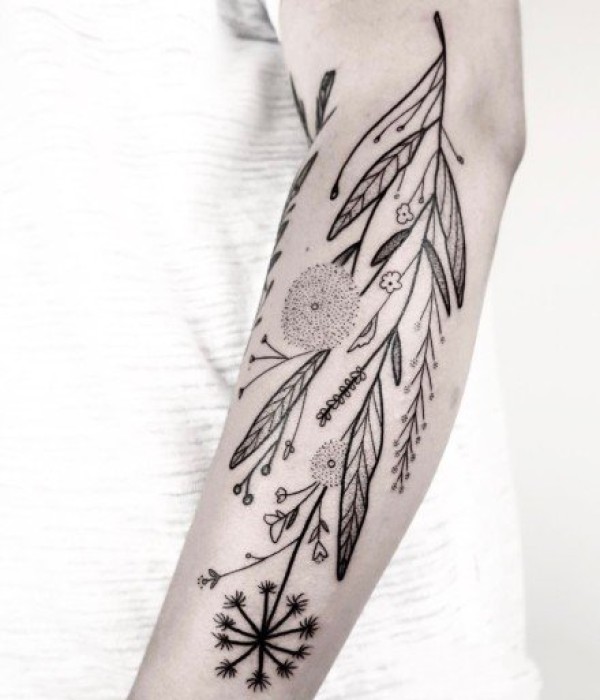 和实物非常相似的手臂花朵纹身图案