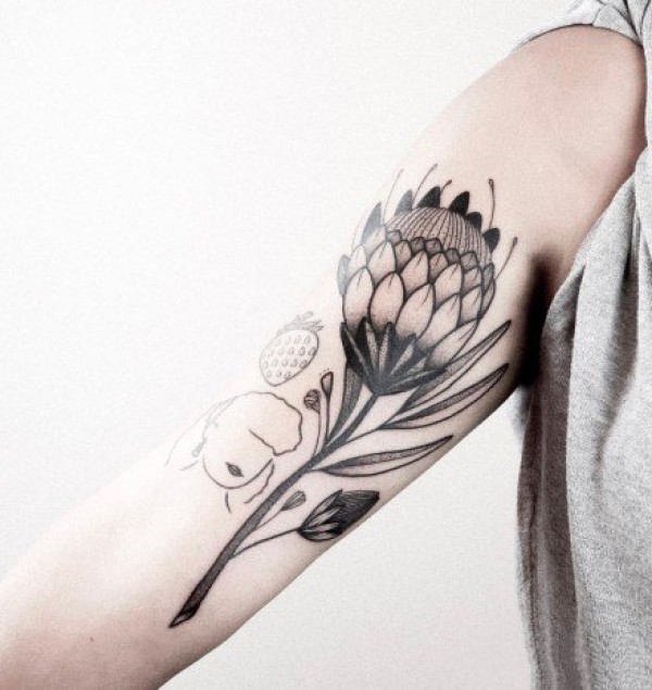 欧美玫瑰纹身 男生手臂上花朵纹身图片