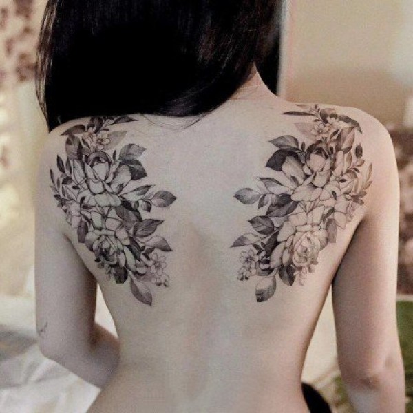 后肩唯美花藤英文图案图片_植物纹身图案大全_纹身图吧