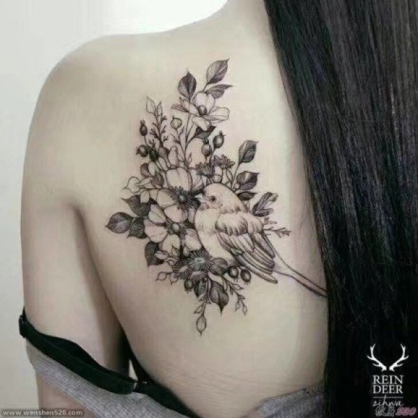 后肩唯美花藤英文图案图片_植物纹身图案大全_纹身图吧