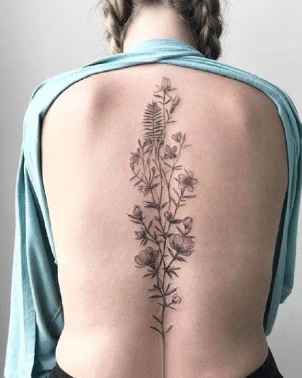 后肩唯美花藤英文图案图片_植物纹身图案大全_纹身图吧