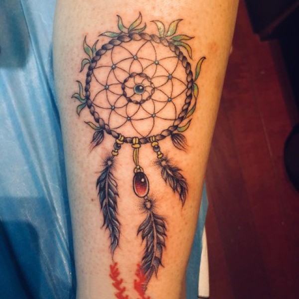 女生喜欢的彩色捕梦网纹身图案9张
