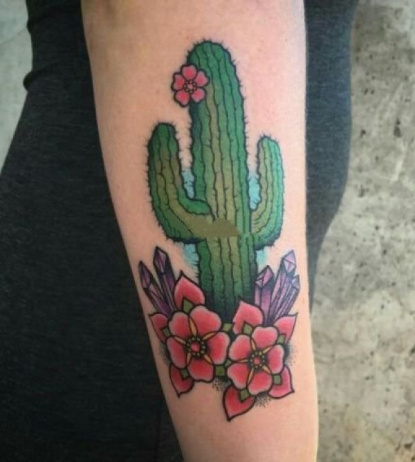 象征生命力顽强的仙人掌纹身图片