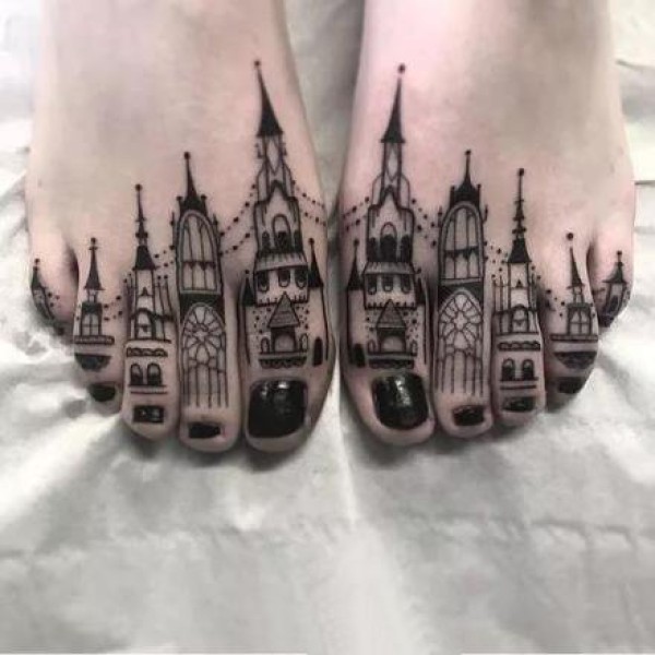 教堂建筑纹身_一组欧美教堂建筑房屋的纹身图案作品图片