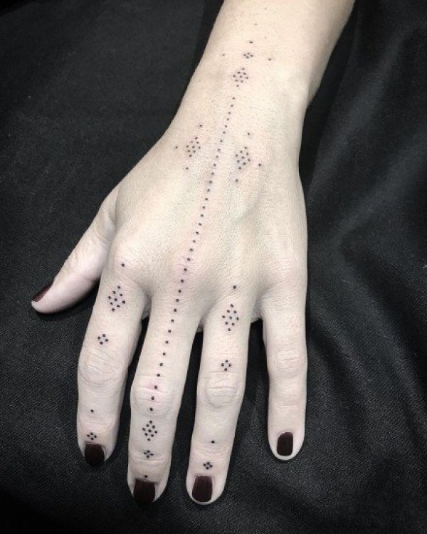 手背上的简约点刺纹身图案欣赏