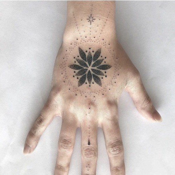手背上的简约点刺纹身图案欣赏