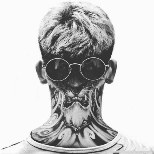 30款男性超帅气的黑灰色脖子纹身图案大全
