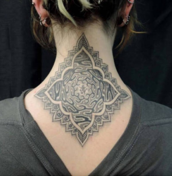 后颈部纹身小图--9张女生脖子后颈处的简约纹身图案