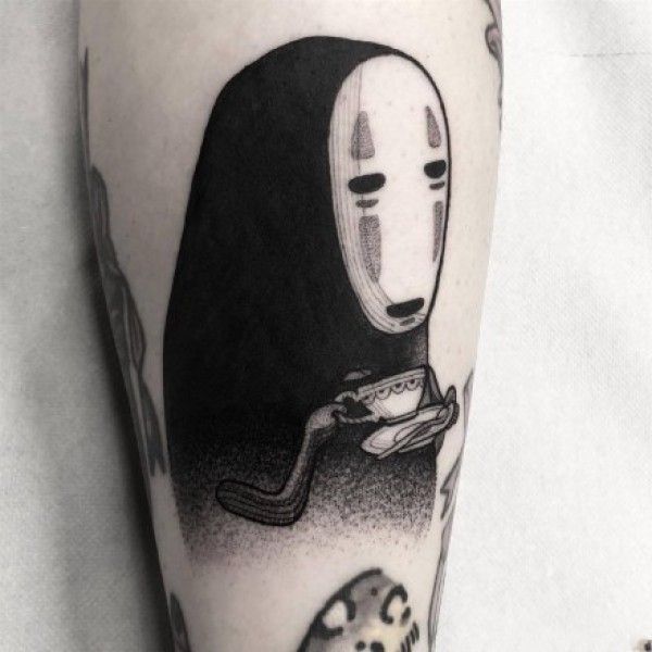 无脸男图案 神秘而又不失柔情的宫崎骏动漫无脸男纹身图案