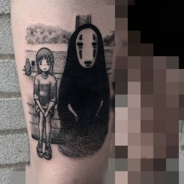 无脸男图案 神秘而又不失柔情的宫崎骏动漫无脸男纹身图案