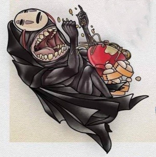 无脸男图案 神秘而又不失柔情的宫崎骏动漫无脸男纹身图案