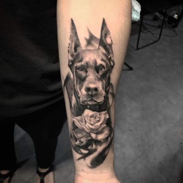 手臂有趣的设计黑白礼服杜宾犬纹身图案