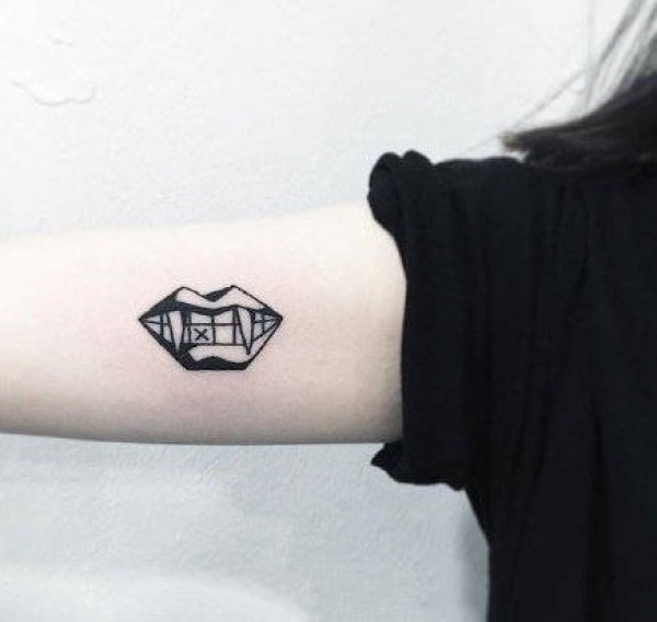 胳膊上极简风格的几何线条纹身图片