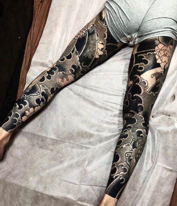 传统花腿纹身--18张传统风格的大花腿纹身图案作品
