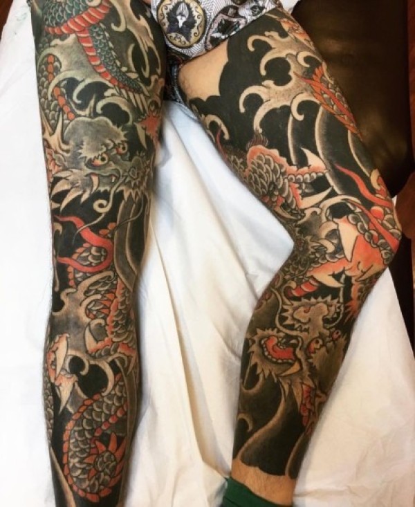 传统花腿纹身--18张传统风格的大花腿纹身图案作品