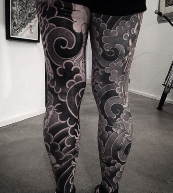 花腿纹身--一组大黑腿纹身图案作品欣赏