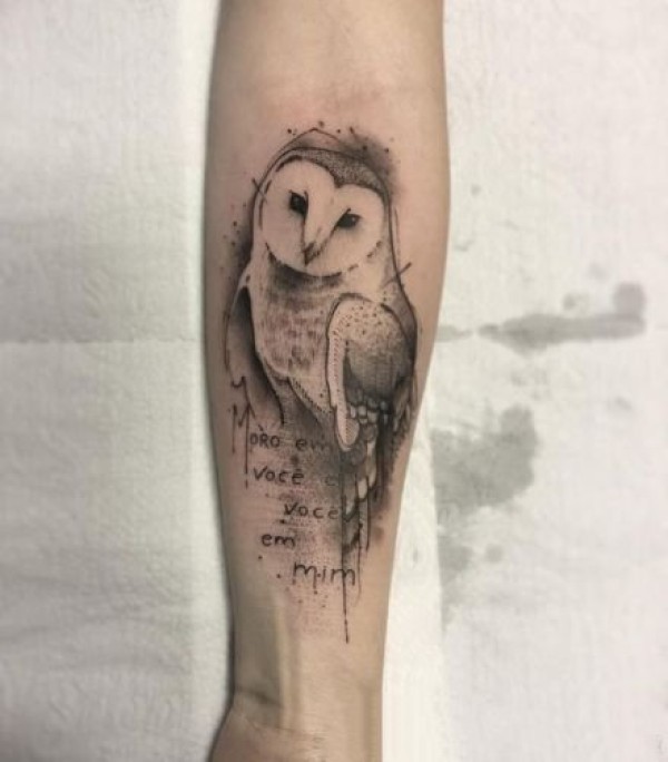 几张猫头鹰花胸纹身图案和手稿欣赏