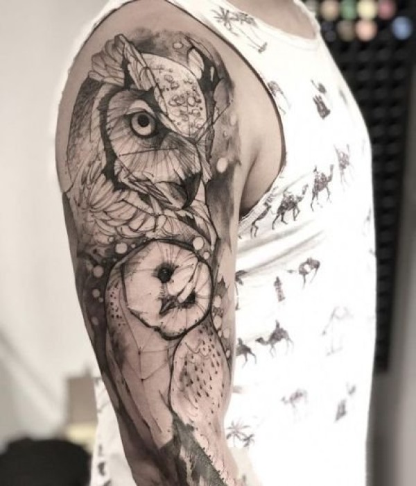 几张猫头鹰花胸纹身图案和手稿欣赏