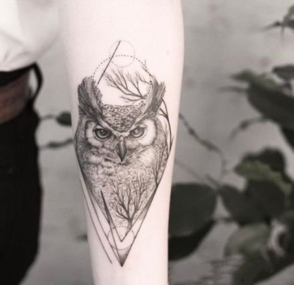 几张猫头鹰花胸纹身图案和手稿欣赏