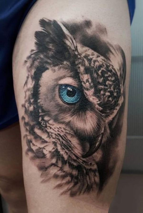 胳膊一张创意猫头鹰文身作品