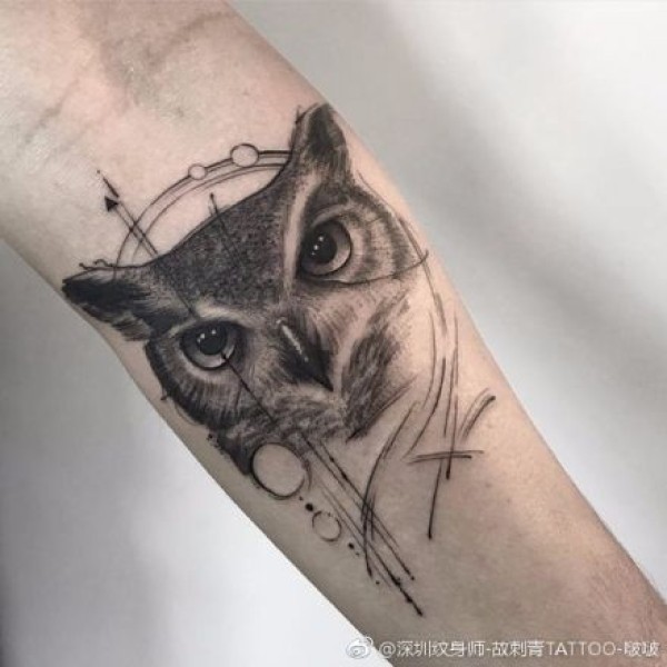 几张猫头鹰花胸纹身图案和手稿欣赏