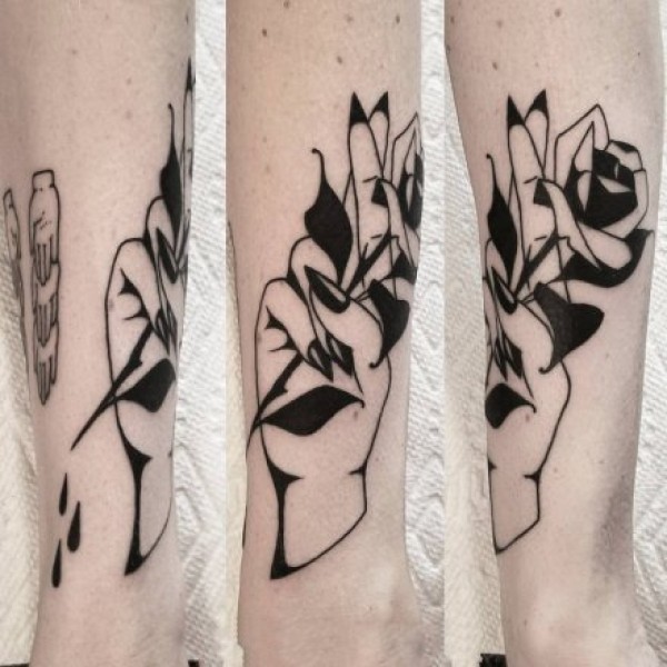 心脏纹身图案 女生手臂上黑灰纹身心脏纹身图案