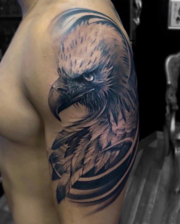 雄鹰刺青--9张黑灰线条的老鹰纹身作品图片欣赏