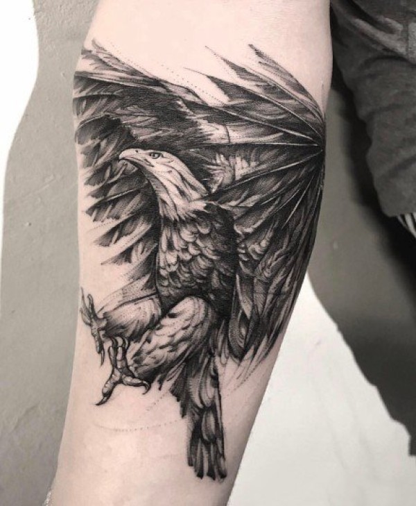雄鹰刺青--9张黑灰线条的老鹰纹身作品图片欣赏