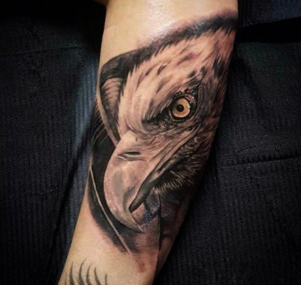 雄鹰刺青--9张黑灰线条的老鹰纹身作品图片欣赏