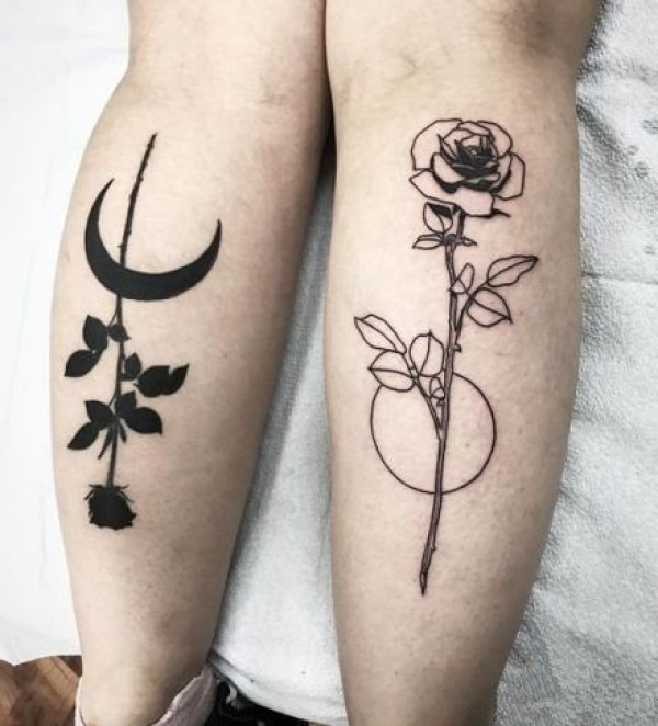 小腿玫瑰花纹身:9张小腿上漂亮的一组玫瑰花纹身图案