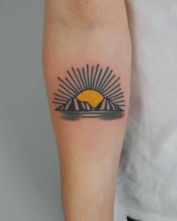 胳膊肘上的太阳纹身