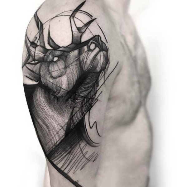 线条设计感很不错的暗黑灰纹身作品