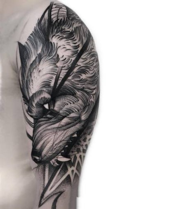 线条设计感很不错的暗黑灰纹身作品