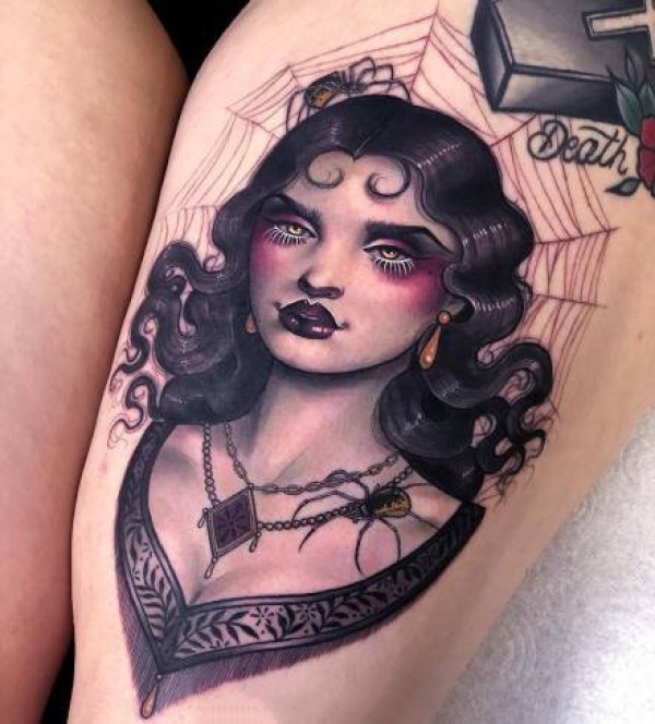 很有古典风格的欧美女郎纹身图案