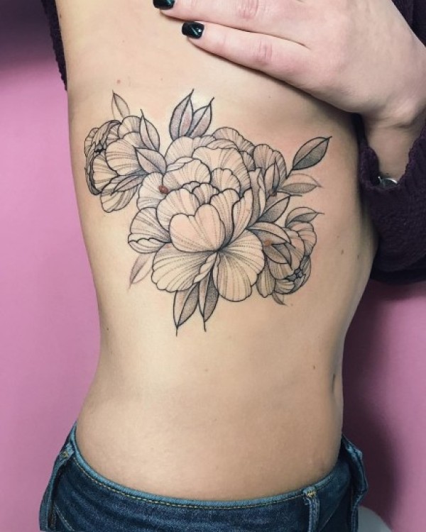 女性腰部莲花花纹刺青_腰部纹身图案大全_纹身图吧