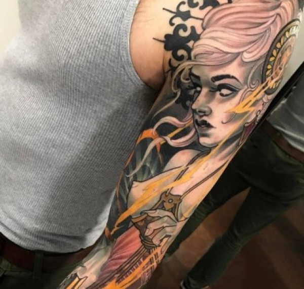 日本彩色新传统传奇人物纹身动物图案纹身 by Yushi Tattoo