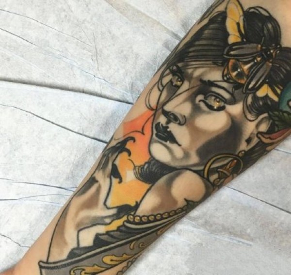 日本彩色新传统传奇人物纹身动物图案纹身 by Yushi Tattoo