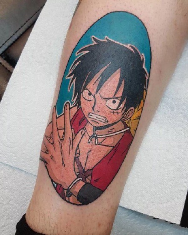 腿部点刺日本漫画海贼王全体成全纹身图案