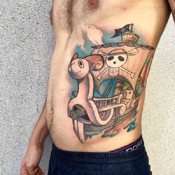 腿部点刺日本漫画海贼王全体成全纹身图案