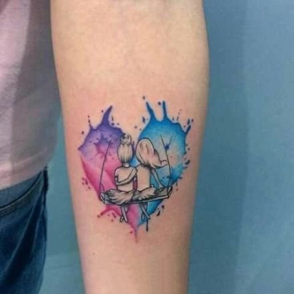 简单的情侣成对爱心纹身图片