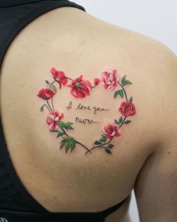 爱心小纹身--一组花花草草组成的心形小清新纹身图案