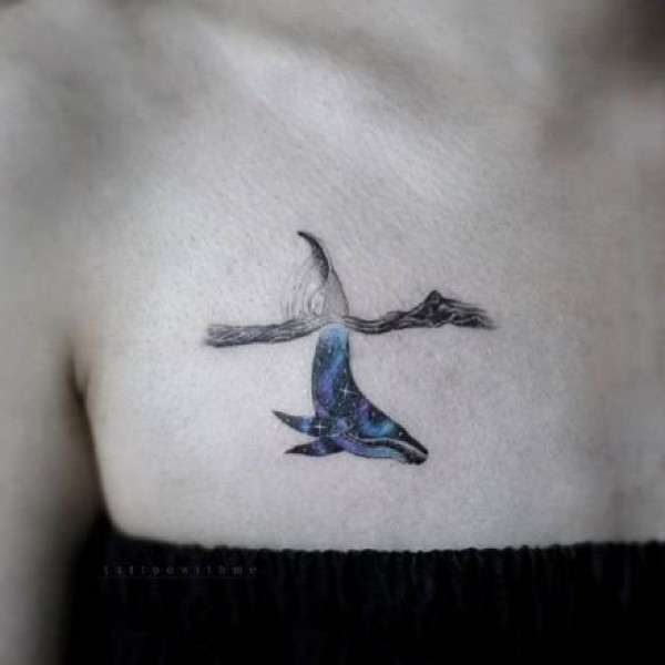 9张唯美的星空和鲸鱼搭配的纹身图案