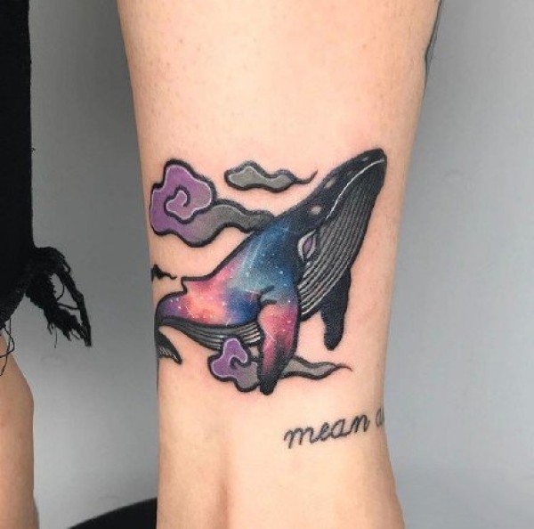 9张唯美的星空和鲸鱼搭配的纹身图案