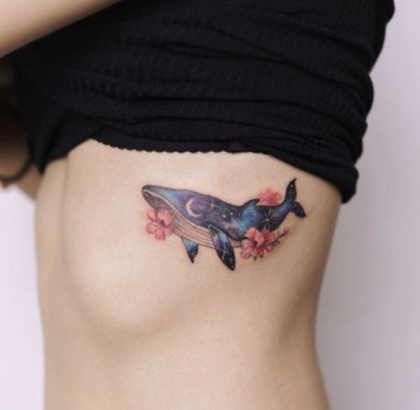 9张唯美的星空和鲸鱼搭配的纹身图案