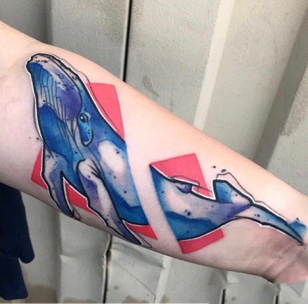 9张漂亮的水彩色鲸鱼纹身图案作品