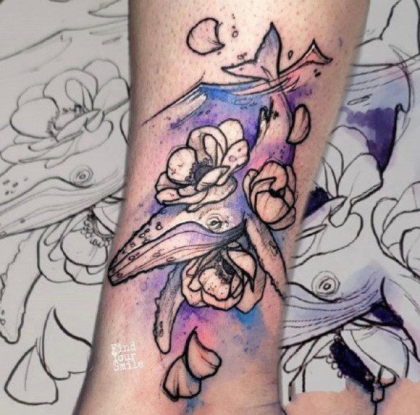 9张漂亮的水彩色鲸鱼纹身图案作品